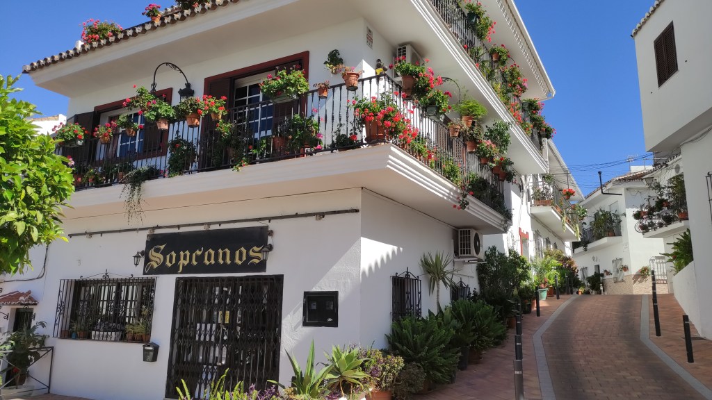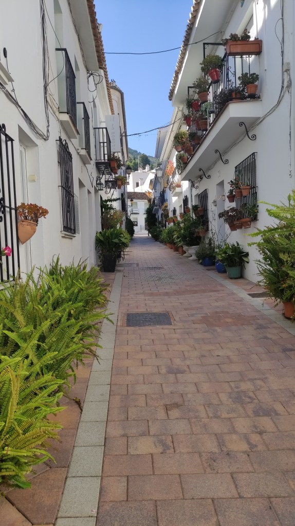 Este año del 2021, nos hemos pasado de nuevo por Málaga, por Benalmádena pueblo, y por su costa; muestro algunas fotos de sus calles con su cuidada blancura y sus macetas.