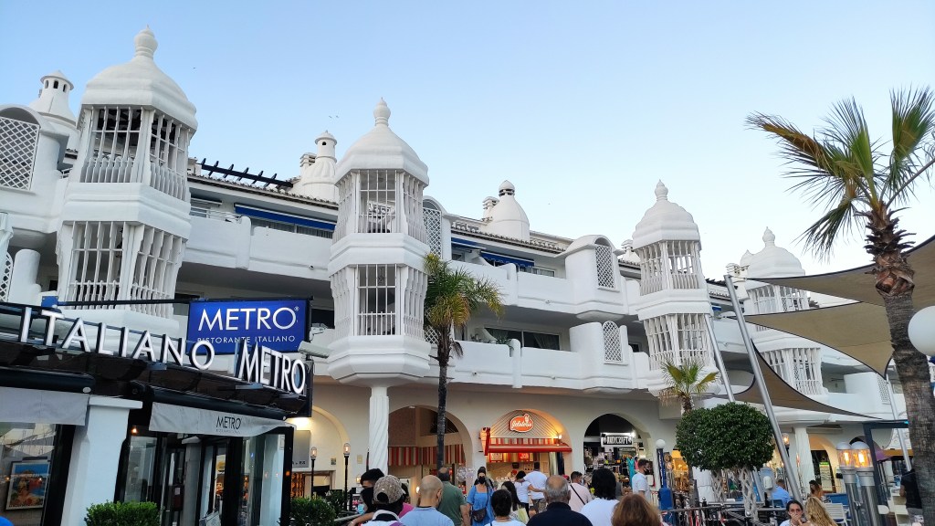 No podía olvidarme del Puerto Marina de Benalmádena, con su estilo elegante, adornado por almenas y detalles árabes, un buen lugar para pasear y degustar la cocina malagueña.
