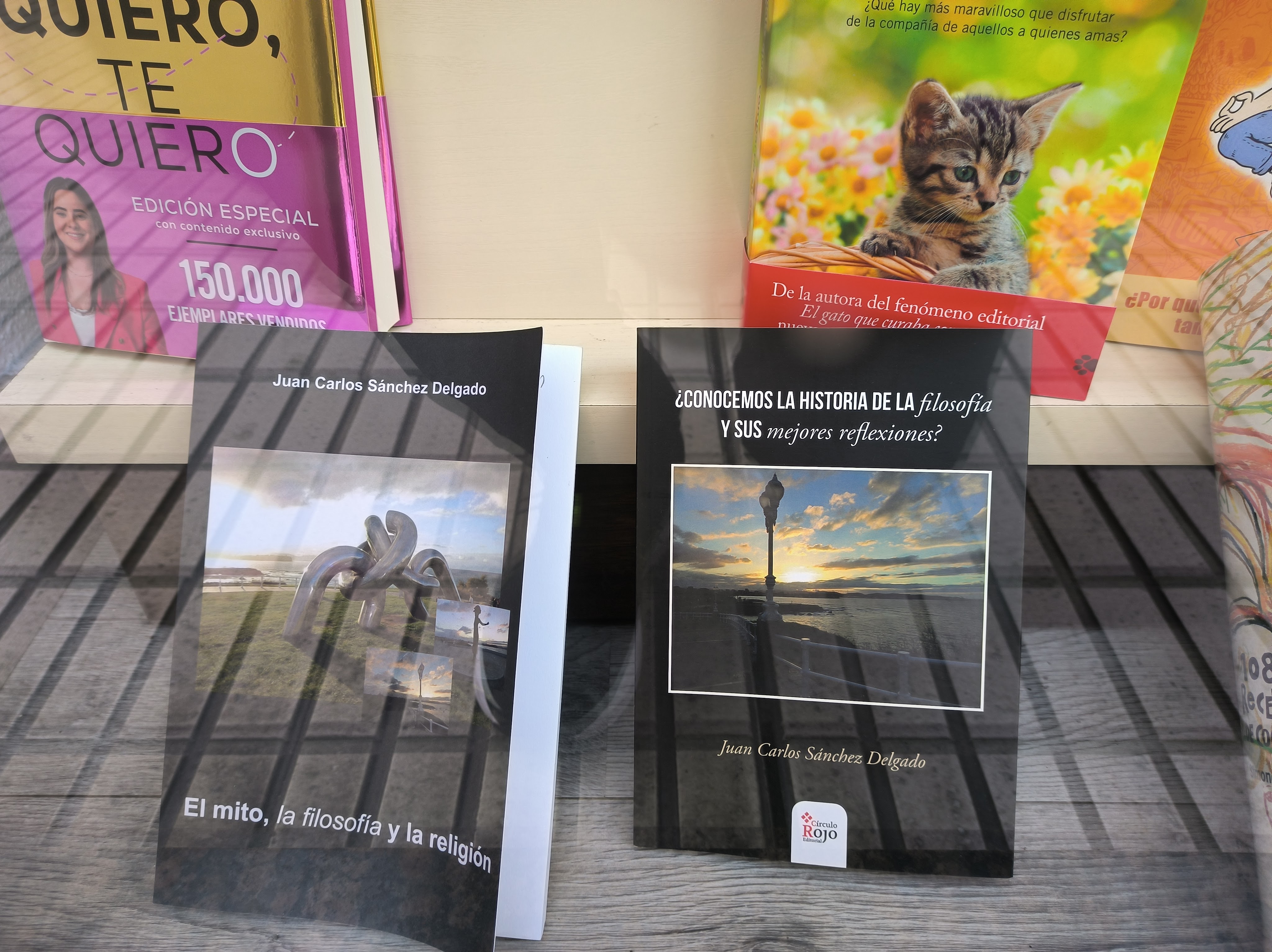 Mis dos libros en el escaparate de la librería Atenea
